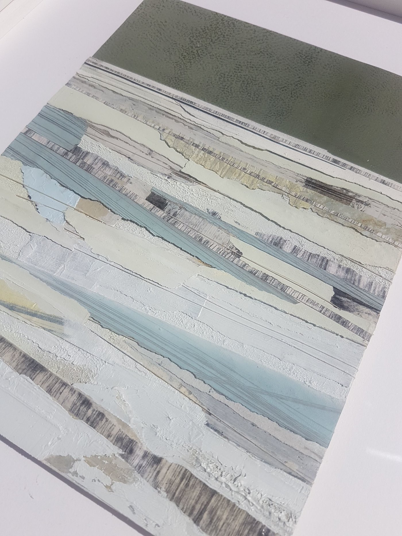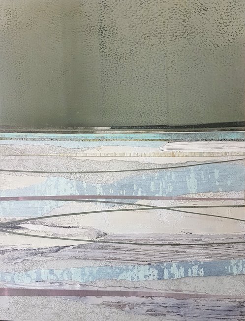 Very excited to have had these two pieces selected for the RWA 169th Open exhibition in Bristol this year (8th October 2022 to 8 January 2023.) 'Scatter 1' and 'Scatter 2' were produced in 2020 using oil painted and printed papers on card. They are a response to scattered sometimes dazzling light cast across water. Bands of subtle colours and textures; some very tactile, others glossy and reflective with lines of thread wrapping the surface.